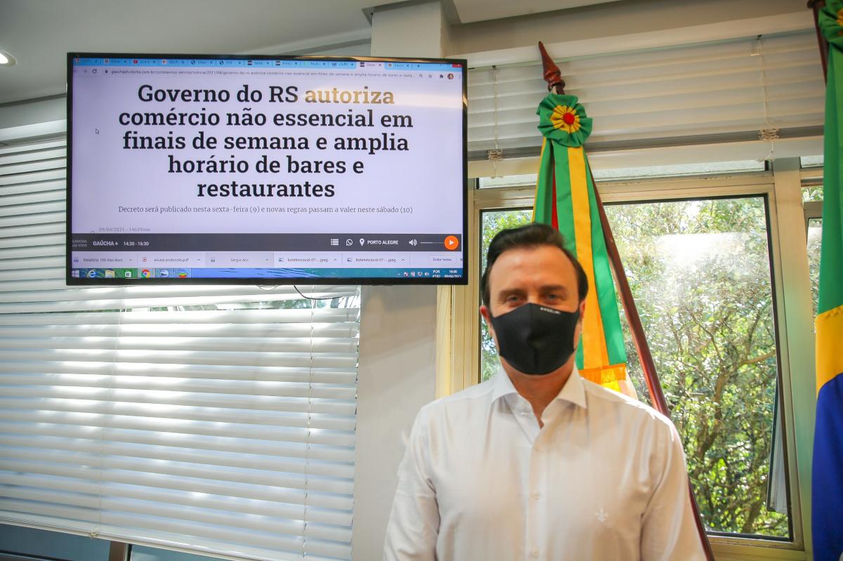 Em pronunciamento do Governador do Estado, Eduardo Leite, nesta tarde de sexta-feira, dia 09, sobre o sistema de distanciamento controlado no Rio Grande do Sul, foi anunciado a liberação de abertura do comércio não essencial, bem como a ampliação de horários de bares e restaurantes.